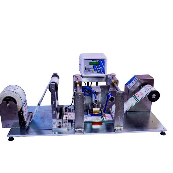 Equipamento DATADOR Automático RBS-100 constituído de uma sistema que utiliza de um lado uma Bobina de Rótulos ou Etiquetas e de modo Automático faz o desbobinamento, dessa bobina, a impressão com Datador automático e no mesmo sistema, na outra ponta faz o rebobinamento do Rotulo/Etiqueta.