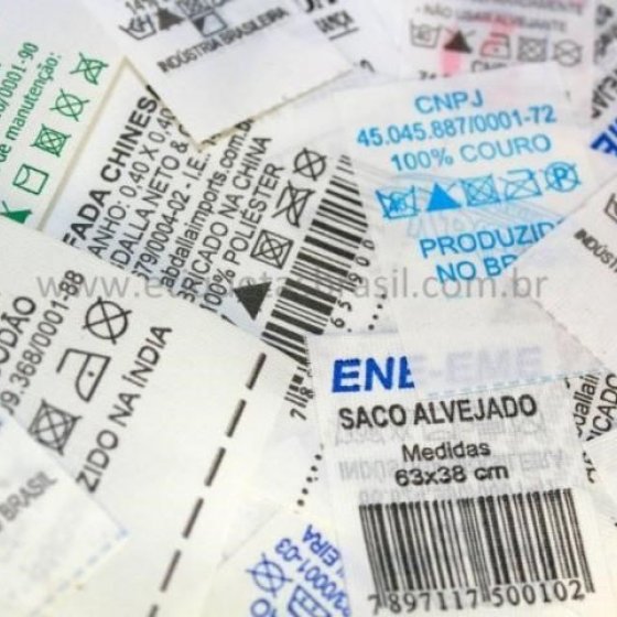 Normalmente são costuradas à peça de roupa ou tecido ou colchão, geralmente indicando a composição, normas Inmetro, segurança etc. Pode receber pré-impressão flexo e impressão térmica com ribbon Resina têxtil e são resistente a vários ciclos de lavagem.